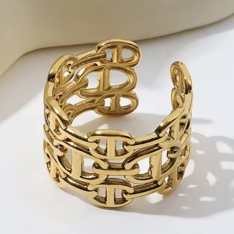 Δαχτυλίδι ατσάλι επιχρυσωμένο με 18 καράτια κίτρινο χρυσό σε σχέδιο τριπλό "ΘΗΤΑ"