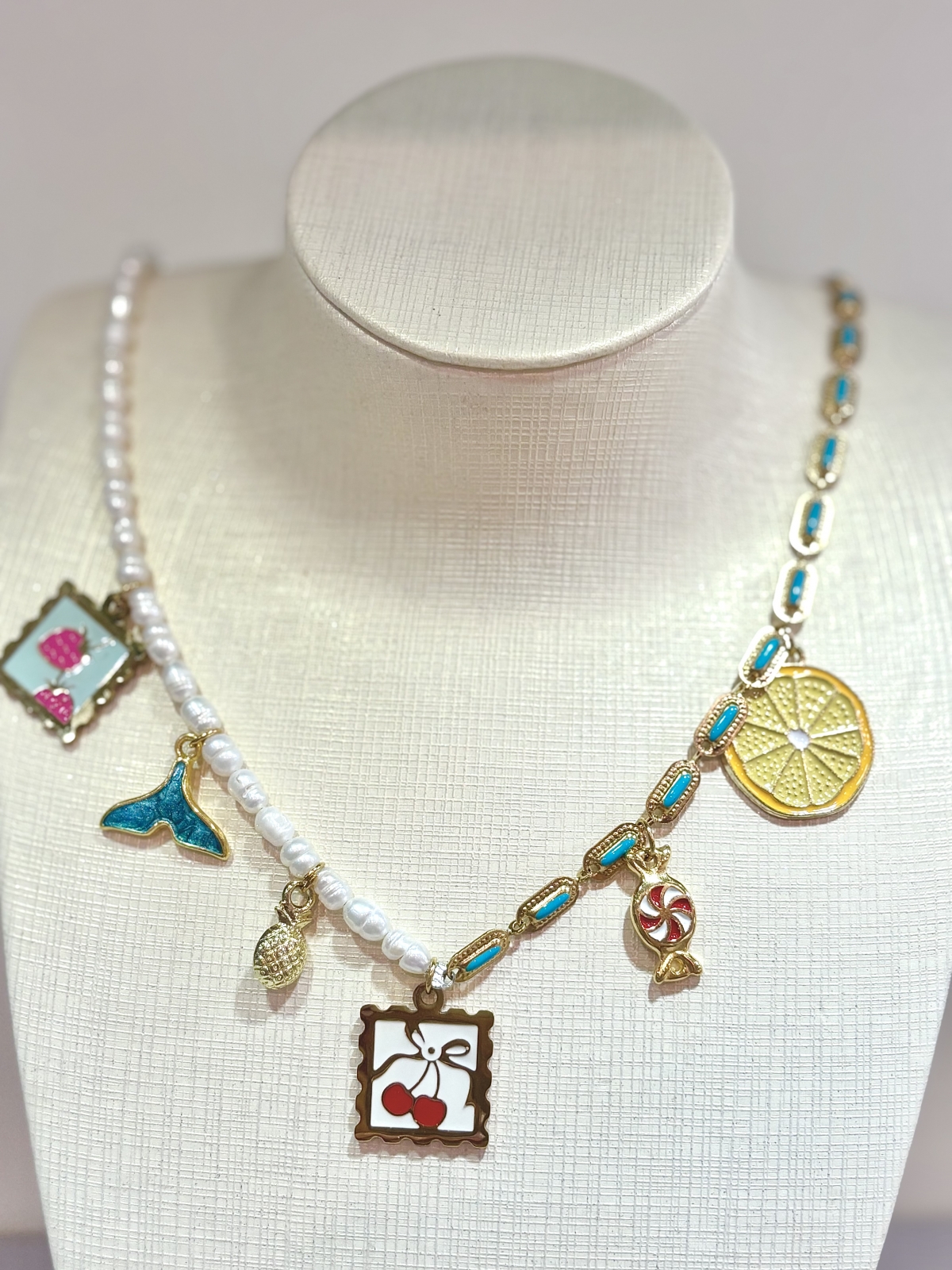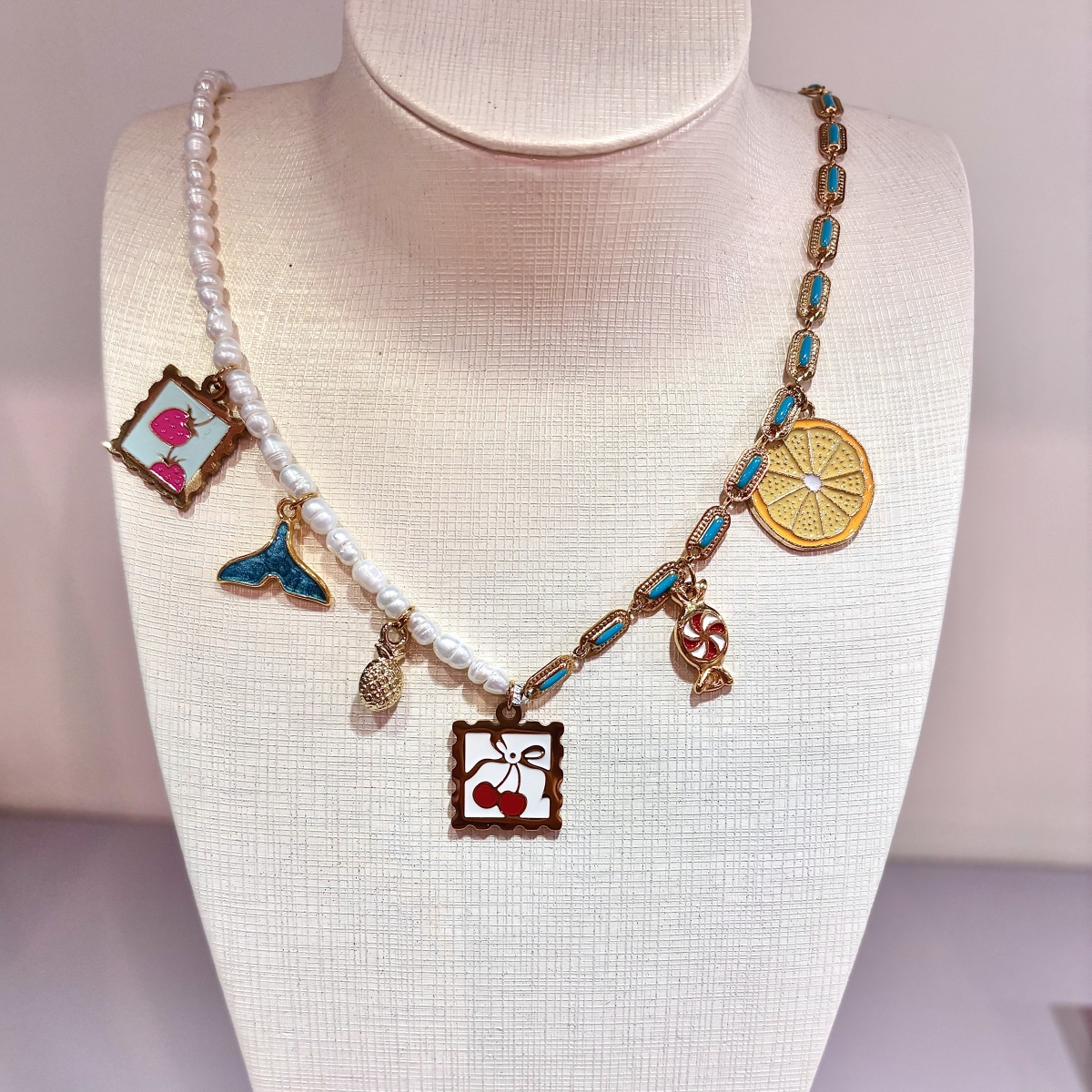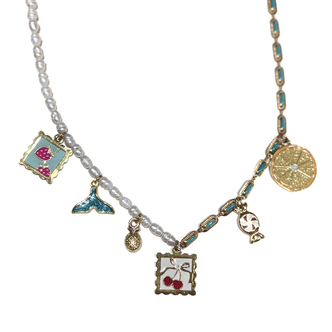 Κολιέ από ατσάλι επιχρυσωμένο με 18 καράτια κίτρινο χρυσό με ατσάλινα στοιχεία αλυσίδα με τυρκουάζ σμάλτο