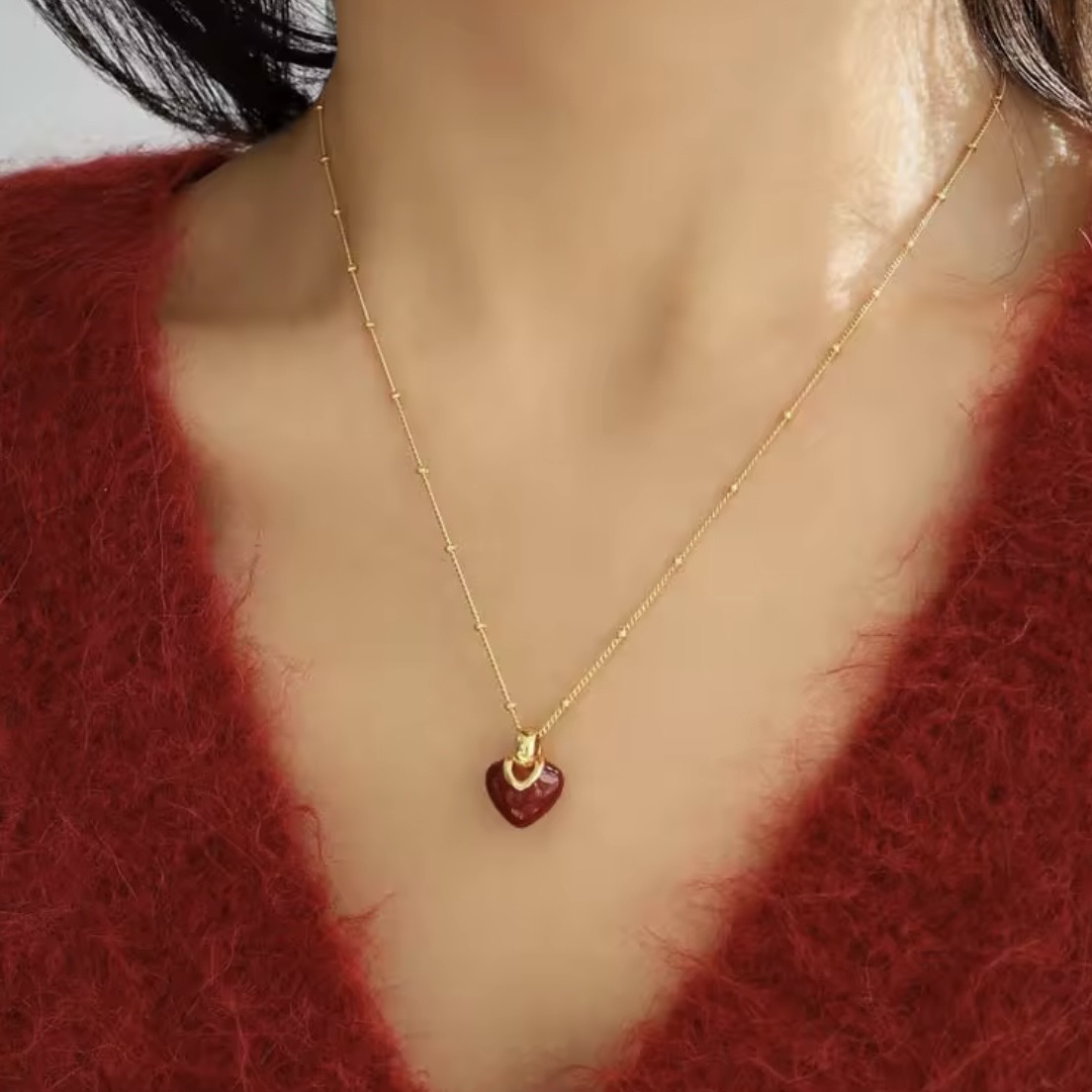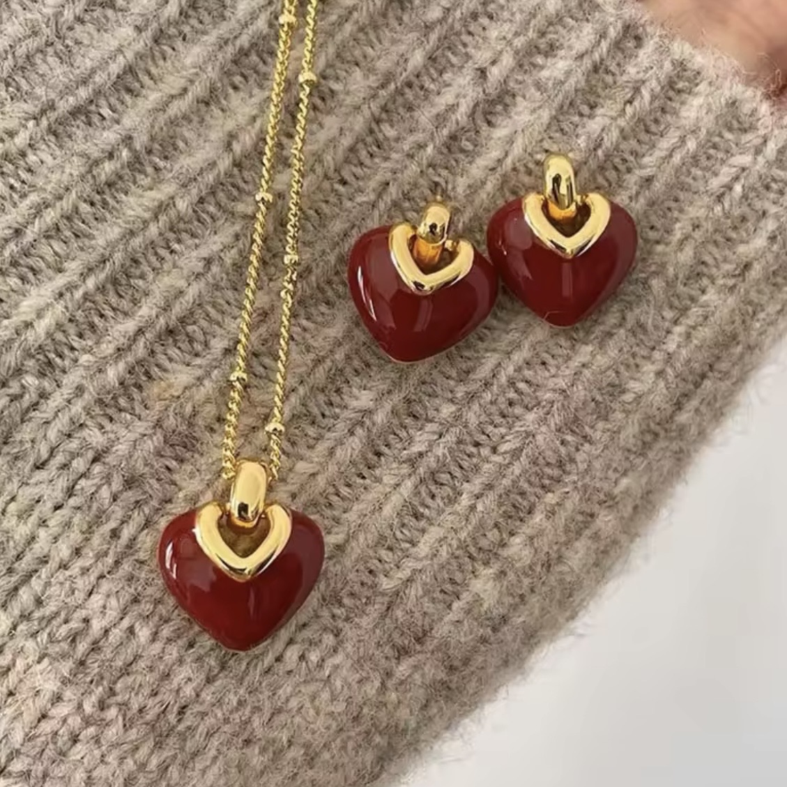 Σετ επιχρυσωμένο με 18 καράτια κίτρινο χρυσό από ανθεκτικό ορείχαλκο με καρδιές από ρητίνη και αλυσίδα με μπίλιες