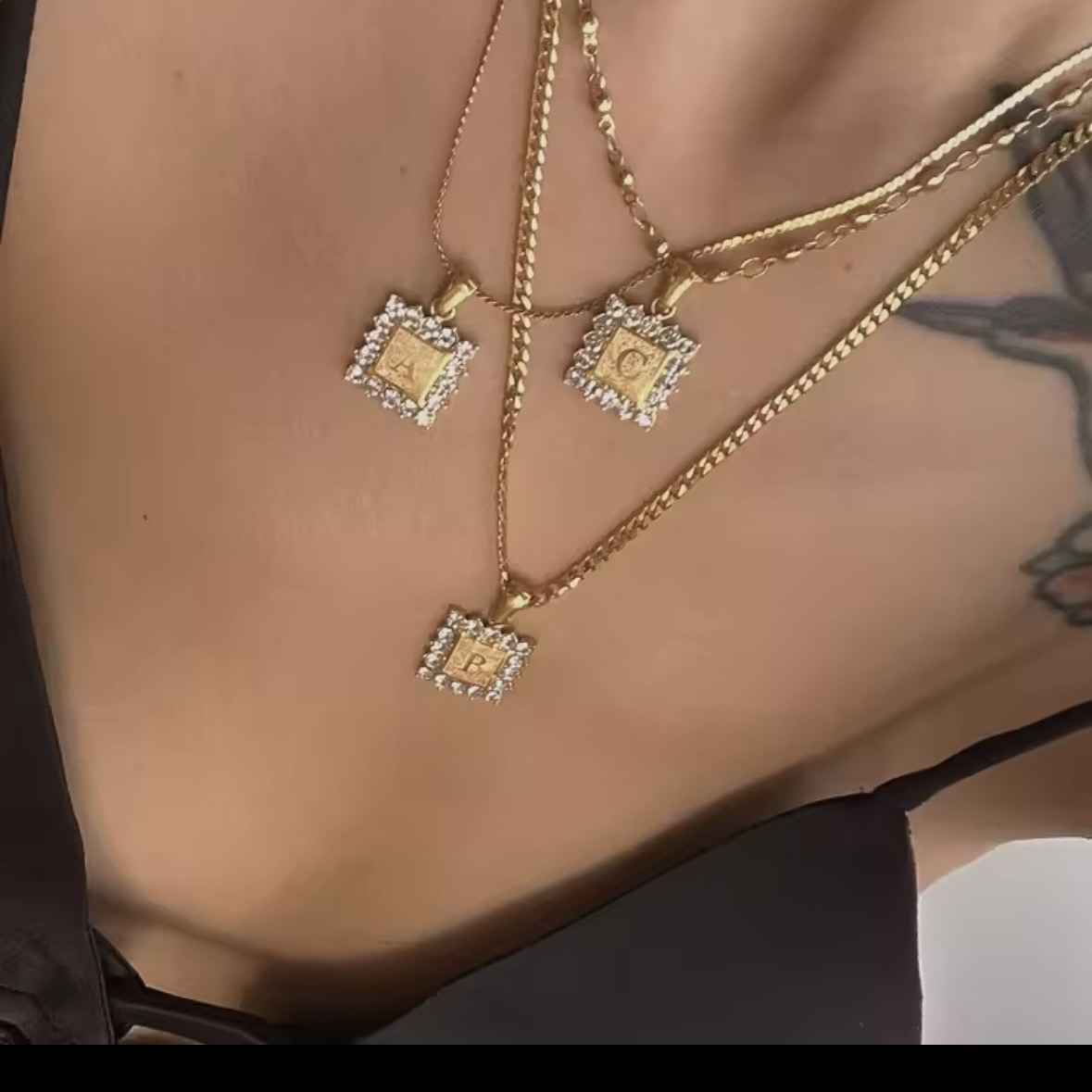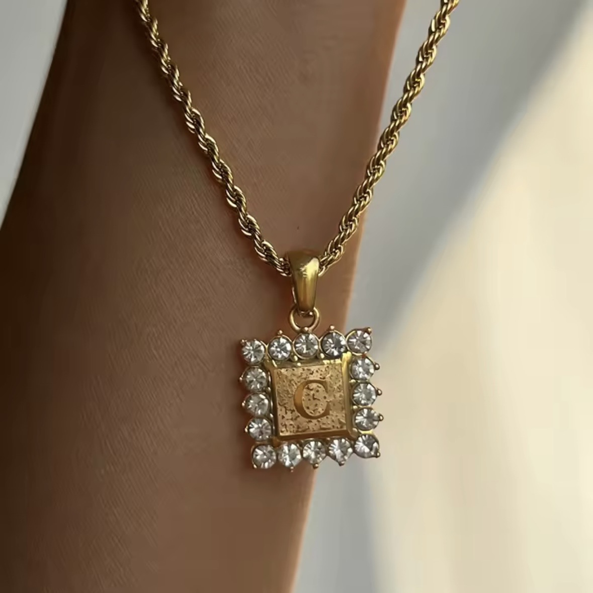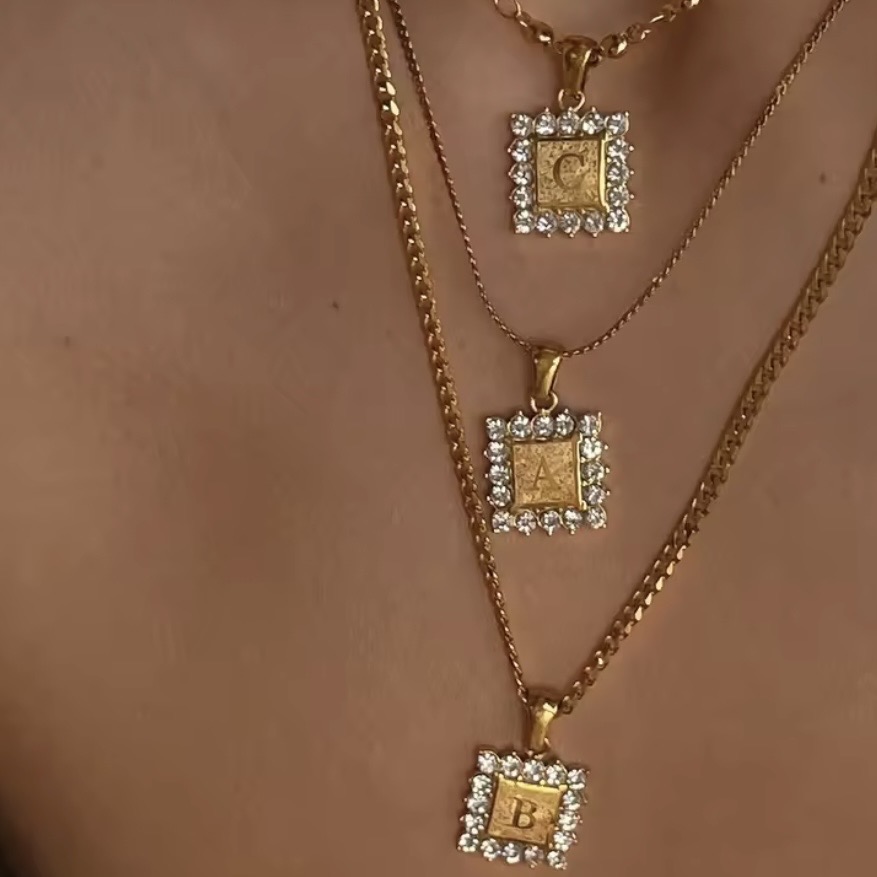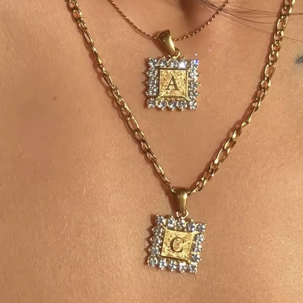Κολιέ ατσάλι μονόγραμμα επιχρυσώνει με κίτρινο χρυσό 18 καράτια και ζιρκόν άριστης ποιότητας