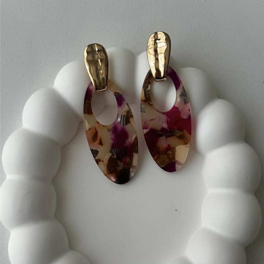 Σκουλαρίκια με ρυτίνη σε χρώματα φούξια και χρυσό επιχρυσωμένο με 18 καρατια κιτρινι χρυσο