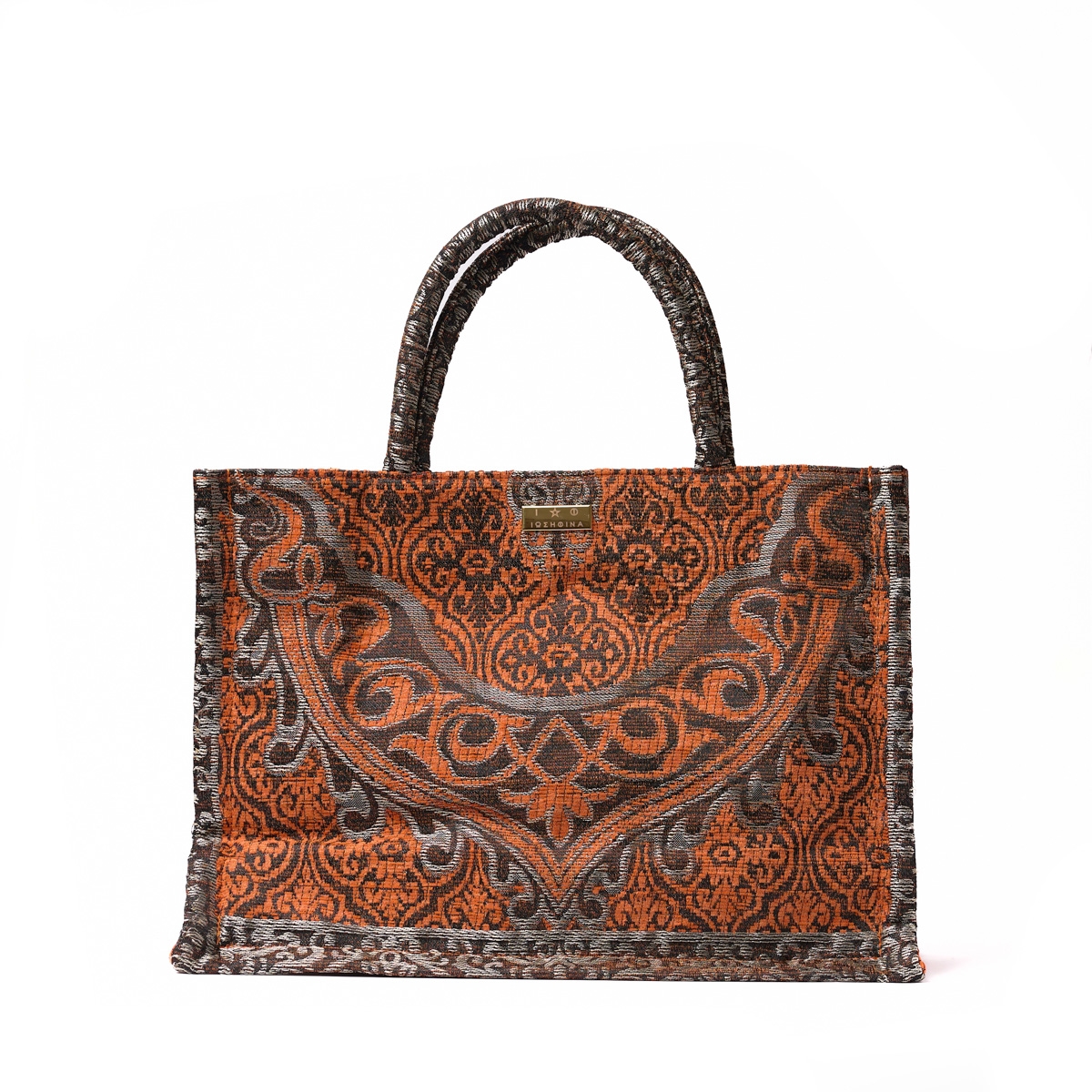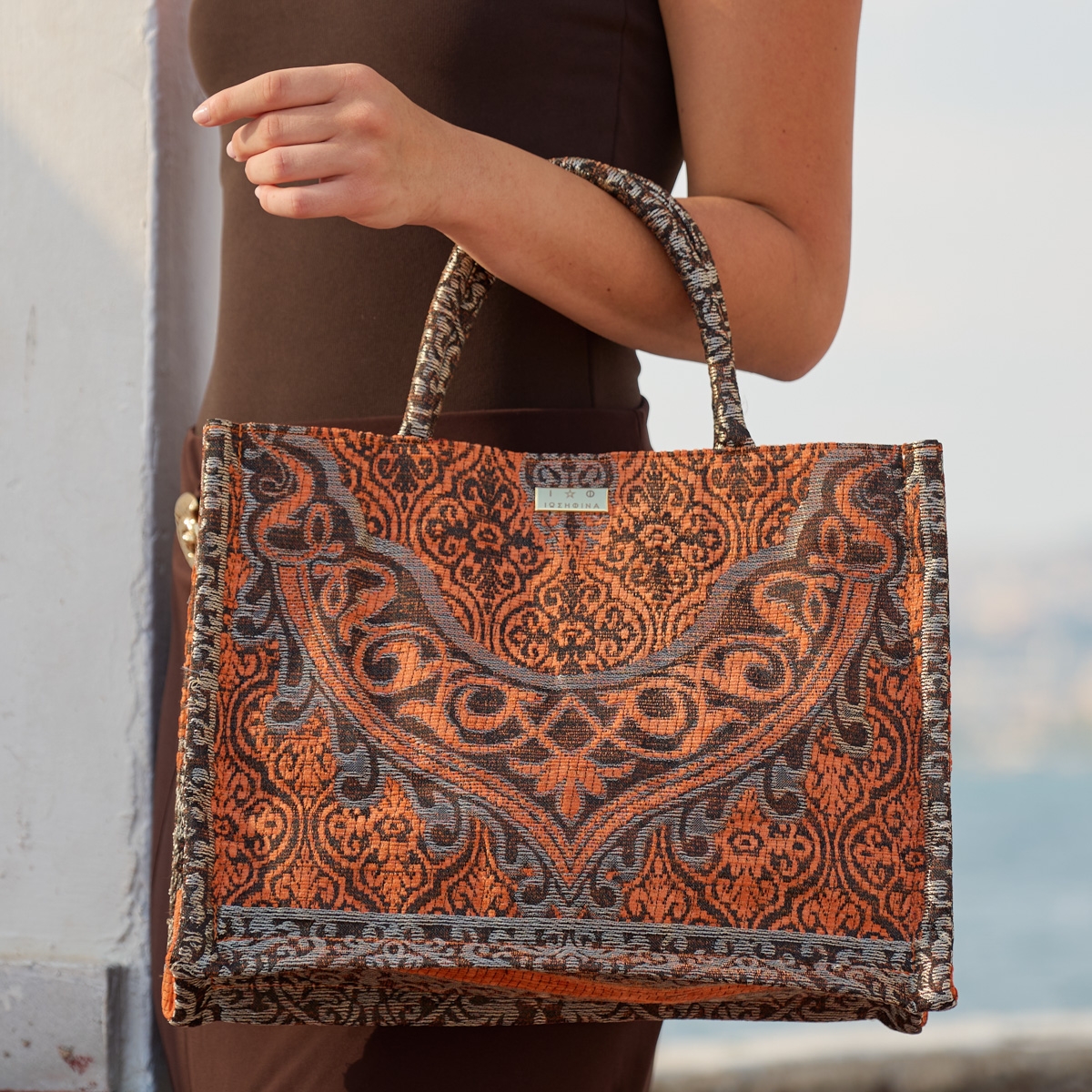 Τσάντα χειρός ''ΤΟΤΕ'' κεραμμυδί με μαύρα σχέδια